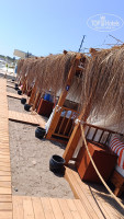 Пляж маленький, спасал пирс.. На нём и загорали.. Очень удобные лестницы по периметру пирса.. С берега зайти проблема, просто глыбы в море..