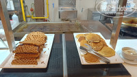 На завтрак всё как и везде но плюс дают Красную солёную рыбку.. Мед в сотах..Очень много фруктов, персики, нектарины, абрикосы, всё такое сладкое, сочное не то что у нас)
