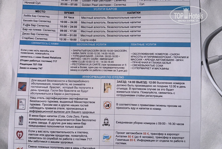 Телефон не работал, но это и не нужно было (в туалете отдельный телефон, тоже не работал) - вообще пофиг. Детских каналов ТВ на русском в номере нет - везите ноут или ребенок будет на турецком детский канал смотреть.
