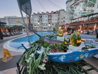 На сладком столе представлены и турецкие сладости, и европейские. Количество овощных холодных закусок зашкаливает. Индейку, курицу, ягненка, рыбу готовят в разных вариациях - гриль, тушеное, отварное, в виде холодных рулетов. Их качество также на высшем уровне. Возможно они и островаты, но не забываем, что мы в Турции, а не за диетическим столом в санатории. Два раза в неделю проходят тематические ужины.