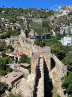 Обошли ближайшие достопримечательности: пещера Дамлаташ, памятники, дошли до музея (его не стали посещать), посетили маяк, пристань, несколько раз гуляли по территории красной башни, поднимались в гору от красной башни к развалинам, поднимались на фуникулере (не стоит переплачивать за "частный подъем", мы заплатили за групповой подъем, а в итоге ехали вдвоем)