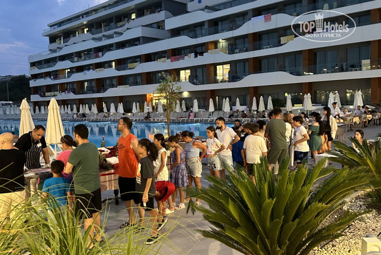 Огромные очереди за мороженным на ужине, за пиццей, за шашлыками. Однажды простоял в очереди за пиццей на ужине 34 минуты, за мороженным турецким можно было встрять плюс/минус на столько же. Найти место на бассейне после 10 утра - нереально, все завалено полотенцами. Огромное количество гостей на вечернем шоу, особенно в выходные, люди стоя смотрели, занимали лежаки, уводили стулья из под носа друг друга.