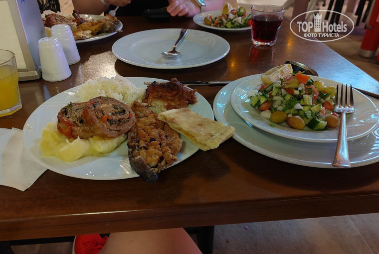 Отдыхали с подругой, приехали мы поздно и уже не успели на ужин (мы как бы и не переживали, у нас было что перекусить), но после того как мы уже поднялись в номере, позвонили с ресепшена, предложили спустится так как нам накрыли ужин (1 фото, ещё приносили суп, но мы отказались, так как и это её съели) . Номера комфортные, у нас номер был под крышей, Wi-Fi немного ловил на балконе, в номере пропадал. В плане еды, на завтрак были яйца, омлет, каша овсяная. Я ела омлет, очень вкусно (за всё время прибывания он мне не надоел), готовили его на открытой кухне (красивое представление). На обед и ужин было и мясо и рыба, овощи и много ещё чего, что я не пробовала. Я не могу сказать что люблю рыбу, но сдесь её вкусно готовили, поэтому практически каждый день ела рыбу. Из фруктов были яблоки, апельсины (кстати вкусные), арбуз. Было ещё чаепития с вкусняшками, но мы на него один раз только сходили. До того как поехать читала отзывы на данном сайте, что плохо кормят, но лично мне всего хватало, да можно дабавить разнообразие, но это не критично. По работе персонала, все супер, в номерах чисто. На ресепшене кстати можно поменять деньги, курс такой же как в обменниках. Так же в отеле мы ходили в хамам (45$, впервые в пенном массаже присутствовал небольшой массаж руками) и на массаж (40$ за час), девочки молодцы-приветливые, общались "на пальцах" и с помощью переводчика в телефоне, массаж мне понравился. Собственного пляжа нет, до моря не долеко, мы покупали напиток в кафе, лежаки тогда бесплатно, ценники на напитки примерно одинаковые, поэтому просто выбирали по комфорту (очень запомнился Фиго). Если пройти дальше, там есть пляж какого-то отеля, мы там на своем лежачке сидели, никто нас не выгонял (но лежаки кафе удобнее и зонтик есть).