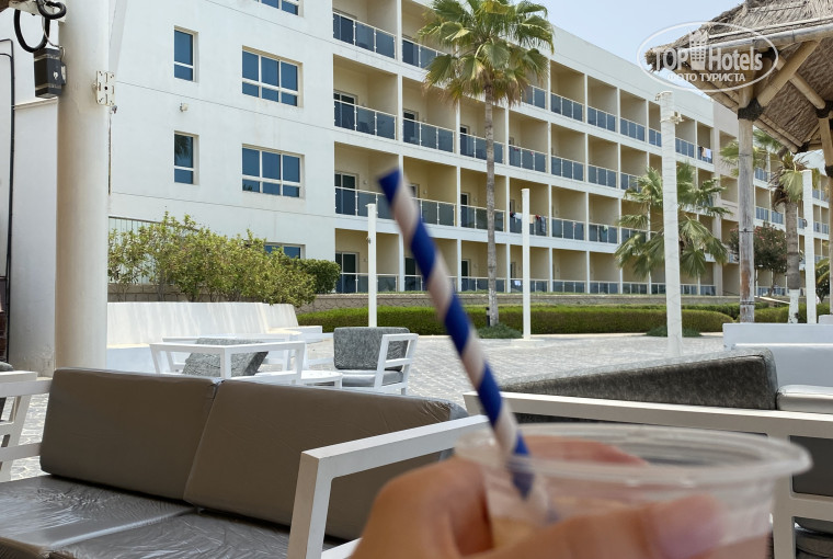 в целом отель хороший. смотря кто за чем едет так сказать... мы приехали на море... все отзывы про отель читали заранее. знали что за пределами отеля ничего нет, кроме фруктового рынка в 5 км. а ну есть алко маркет у торца нашего здания. выбор хороший. цены есть на что то очень сладкие... купили ром пряный и биффитер. было что то типа диско клуба, но проходя мимо него часов в 9-10 вечера, никого не обнаружили. территории как таковой у отеля нет... перед отелем пляж, за отелем трасса и горы .