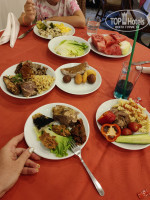 Питание на 5+ мясо разного вида, рыба, язык, курица на гриле, печеная, в соусе, кучу овощей и фруктов, десерты, пицца, лепешки, наггетсы, мороженое, качественные напитки и коктейли
