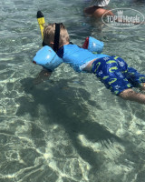Пляж и море. Тут опишу свое первое впечатление, это было разочарование, пляжа нет! От берега и метров на 400 просто по колено и не песочек, а коралловый пласт с водорослями и камнями. Купаться надо идти по пирсу, далеко. На пирсе три спуска, первый метров через 400, воды чуть выше колена, там если кто то и был то с малышами, второй метров через еще 100, воды по пояс, мы сначала купались там, смотрели на рыбок. Вода чистая, прозрачная, приятная по температуре. Третий еще через метров 100. Вот когда я попала туда, я влюбилась!!! Это прекрасный риф, куча разных рыбок, всех цветов и форм, как какая то параллельная реальность, глубина метра 2-3, а проплыть чуть дальше там просто синяя бездна, очень завораживает. Интересно было наблюдать, зная что под тобой всего лишь пару метров глубины, на эту синюю пропасть и крупных рыб проплывающих вдалеке. Конечно были мысли, а не приплывет ли кто то страшный от туда, но спасатели, которые следят за купающимися, сказали что ни разу не видели, если и есть, то очень очень далеко (пришлось поверить и не грузить себя страхами).