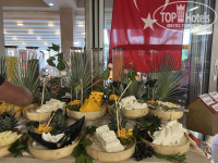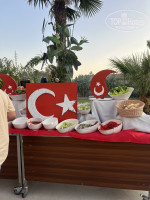 Отель на слабую 4*не 5!!!!! Из минусов маленькая территория, локаций для фото нет от слова совсем. Комплектация в номере стандарт:мыло только в дозаторе, 2 в 1 шампунь/гель в дозаторе , лосьон для тела, кондиционер для волос в тюбиках , ушные палочки и диски . И все ! В мини баре на трех !!!человекчетыре баночки воды по 200 мл. , чай, кофе в пакетиках . За 8 дней убирались один раз, один раз приходила уборщица в 15:00, мы отказались от уборки, отдыхали в это время. Обычно в других отелях уборка производится в более ранние часы, когда все на море. Самое большое неудобство это обеспечение отеля питьевой водой. Вода представлена в неудобных баночках из мягкого пластика, сверху закрыт стаканчик фальгой. Если вы на пляже и у вас руки в солнцезащитном креме или если ребенок , то это настоящий квест открыть эту баночку. В номере главное есть чайник , но попробуйте натаскать с главного ресторана этих стаканчиков по 200 мл. чтоб его наполнить . Повторяю, за 8 дней мини бар не пополняется! И вы себя заявили как 5*! Пастельное белье, полотенца чистые, новые. Но матрасы жесткие, подушки плоские. В номере все в исправном состоянии и, все работает: кондиционер,телевизор, мини холодильник,душ. Большой минус это удаленность от моря. Турагентство вам будет говорить что все норм есть трансфер из отеля . Имейте. Ввиду трансфер начинает из отеля с 9:00 когда уже пекло, и последний с пляжа в 17:45. Интервал 30 минут, все остальное время пешочком, из отеля в гору. Маленький лобби бар. В период с 12 до 14 , когда одни выселяют я а другие не заселились сидячих мест не хватает. Кондиционер только в лобби баре. В ресторане его нет!!! Или он не чувствуется потому что двери открыты . Поэтому все сидят или стоят в лобби баре. Из плюсов : 1. отличное, разнообразное питание. Все виды мяса: говядина, баранина, утка, курица, печень, разная рыба на гриле, креветки. Все продумано до минут, в любое время можно полноценно поесть в основном ресторане или перекусить в баре у бассейна. С 12:00 работают снег бар на пляже , там также полноценно можно поесть.С 13-15 работает кондитерская где есть любое мороженое как в упаковках так и шариками . Тут же большой выбор молочных коктейлей. Фрукты сезонные : бананы, апельсины, абрикосы, яблоки, груши, сливы, дыни, арбузы. Порционно были ананасы, кокосы. Есть деетическое меню, на пару. В этом отеле вы точно не останетесь голодны. 2 плюс: работа аниматоров. Они молодцы, отрабатывают программу на 100%. 3 плюс: сотрудники. Все очень вежливые, приветливые, доброжелательные. Работают все время, что то моют, убирают, обслуживание официантов отличное👍. Аля карт два ресторана турецких и мексиканский . В мексиканском очень огромные !!! порции, это скорее минус , зачем переводить стол ко еды? в таких количествах никто это не сможет съесть ! Сама еда вкусная , хорошая подача. Официант был очень услужливый, искренне удивлялся и интересовался почему мы так мало едим 🤭 Далее про пляж . Широкая линия пляжа, пляж песок , лежаки под общим солнцезащитным тентом . Лежаков всем хватает , немцы в основном тусуются у бара и бассейна. Вход в море плавный. Спасателей на пляже нет. На пляже есть холодный душ, раздевалка. В отеле два бассейна. Бассейн поспокойнее возле основного ресторана и бассейн у бара , там две горки, и вся тусовка, анимации, дискотеки . Это 4,5 корпус. Нам очень сильно повезло что заселились во 2 корпусе. Из разв