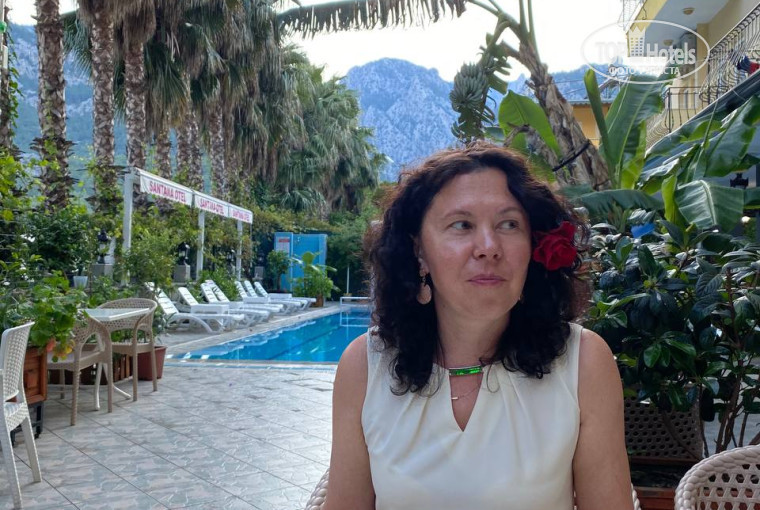 Когда только приехали, нас поразила атмосфера в отеле. Люди размеренно сидели за бокальчиком вина, играла приятная музыка, кругом растения. Приятный дизайн, видно, что за гостиницей ухаживают. Совсем другая атмосфера, отличающаяся от остального Кемера. Это район Бельбиди.