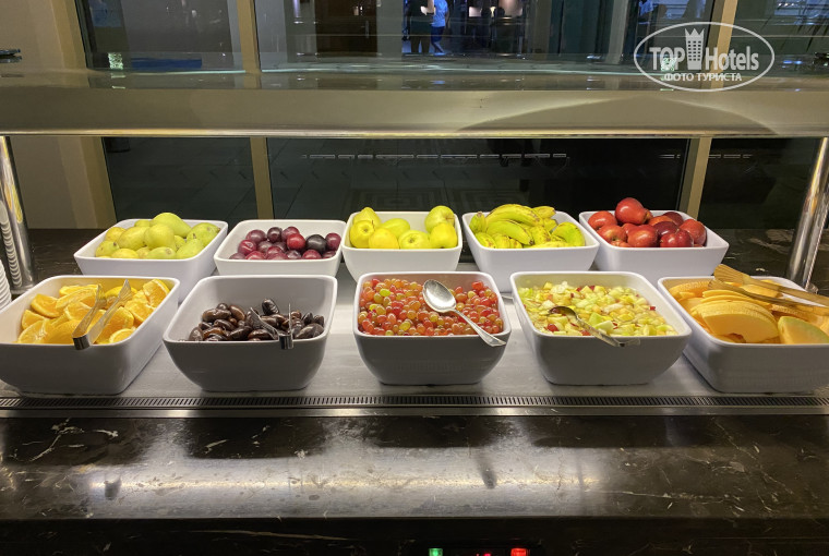 Получается, что выбор блюд очень огромен, каждый найдёт себе что-то по вкусу, то, что любят, то, что нравится, готовят очень вкусно, всегда можно найти достойные блюда. Из-за того, что есть доступ ко всем шведским столам, отсутствуют очереди на точках выдачи. Всегда есть рыба, курица, утка, баранина. Также по вечерам всегда готовят жареные креветки. Всегда есть жареная рыба и иногда кальмары. По утрам подают очень вкусную красную рыбу.