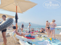 Пляж в принципе хороший, давольно чистый. Но человек который отвечает за лежаки делает вид что никого не видит и уходит в непонятном направлении. Есть пандус для захода в воду, зонты и лежаки от отеля.