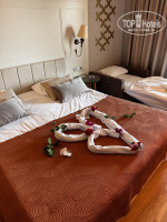 Номер с очень свежим ремонтом, хорошей большой двухспальной кроватью, для дочки разложили софу, шумоизоляция была под вопросом, так как первые три дня были слышны немецкие голоса в соседнем номере, потом тишина. Мебель очень новая с плоским телевизором с очень большой диагональю. Большой санузел с душевой. Нет проблем с подачей горячей и холодной воды, напор стабилен. Освещение очень классное в номере, можно менять разные виды освещения. В номере продуманы кнопки для оповещения персонала по уборке (зеленый) и не тревожить (красный) – это вместо бумажных оповещений на ручку двери. Наличие электрочайника, кофейного и чайного наборов. Сейф в номере бесплатный. Одно одеяло теплое и 1 вафельное. Попросили еще два теплых одеяла, через 10 минут нам их принесли.