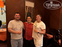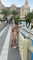 Всем доброго времени суток. Отдыхали двумя семьями с детками в отеле Royal Holiday с 6.08. по 15.08. Отель красивый , территория зеленая , ухоженная, от выхода с отеля почти до пляжа тянутся бассейны с теплой водой, несколько аквапарков для деток разных возрастов , нам больше нравилось быть у детского городка, официанты приносили по заказу любые напитки. Питание разнообразное , всё очень вкусное , свежее. +Не было салатов на обед и ужин , приготовленных из утренних оставшихся продуктов 🙈это порадовало ). В перерыве между завтраком и обедом можно перекусить в баре у бассейнов : пицца, тосты , фрукты , мороженое , донер и лепешки. В барах делали достойные коктейли . Очень нравилось вечерами сидеть в лобби баре, официанты молодцы - не оставляли без внимания ни один столик . Номер взяли на 9 этаже с прямым видом на море . Вид просто шикарный 👍 Как приветствие принесли бутылку вина и фрукты. В номере были комплекты полотенец больших и маленьких , тапочки , косметика , сейф, чайник, чайный набор, кофе и чай. Мини бар : пиво, миринда, пепси, детские соки, минеральная вода и вода без газа. По желанию пополняли конкретными напитками без ограничений . На балконе сушилка, столик , два стула , пепельница. Кондиционер работал тихо и не шумно, не дул на прямую у кроваток (что очень важно для меня и моих маленьких детей ). Уборку номера просила делать до 11:00, так как дети в 12 уже ложились спать. Все было четко, спасибо гест релейшену Миле, очень помогала решать мелкие вопросы по номеру и отелю в целом. Аля карт рестораны платные , но не дорогие , и очень вкусные . Первый раз сходили в Турецкий Аля карт - остались очень довольны - каре ягненка огонь! Повара молодцы! Отметили мой день рождения там . И нам всё же посчастливилось попасть(не с первого раза, за что опять спасибо Миле) в Аля карт японской кухни, это было шоу китчен! Повар Шеф Апо просто мастер своего дела ! Все было очень вкусно - и суп, и креветки , и стейк из лосося и чудный рис с овощами , но в конце нам подали стейк из телятины и десерты , мы были в полном восторге ! Спасибо большое шефу Апо за наши гастрономические «удовольствия»!!!
