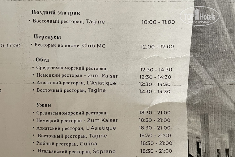 4. Питание. На выбор 5 ресторанов (с концепцией «шведский стол»).
