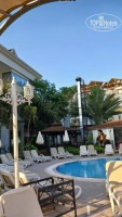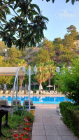 Нормальная четверка с ухоженной территорией. Отель больше тусовочный, для поездки с детьми я бы его не рекомендовала. До пляжа идти 10 минут, дорога не напрягала. Лежаков на пляже хватало всем. Море чистейшее, вход без обрыва, галька. На ноги нужны кораллалки, без них не комфортно. Приехали в отель в 23-00, заселили всех сразу. В номере при заселении были: тапочки, шампунь, бальзам, молочко для тела, зубная паста и щетка. Все в миниатюрах и больше не пополнялось. Были проблемы с сейфом и сантехникой, при обращении на ресепшен Ибрагим все сразу решил. За что ему огромное спасибо! Питание для четверки хорошее, все свежее -голодными не останетесь. Если хотите креветок, мидий, кальмаров, крабов и прочих вкусностей, то вам не сюда. Это не Добедан и не Свандорс, когда берете бюджетную путевку нужно это понимать и потом не удивляться. Мясо -рыба были всегда. Утром был свежевыжатый апельсиновый сок. Завтраки в турции везде стандартные, что в пятерках, что в четверке. В обед- пару видов супов или борщ, салаты, овощи, курица, рыба, тущеная говядина, гарниры, сладости. Вечером была вкусная шаурпа, блюда на гриле: индейка, печень, курица. Тущеное мясо, плов, голубцы. Очень вкусная пахлава- рекомендую! Днем на территории пекут лепешки, но за ними всегда очень большая очередь, как и за блюдами на мангале. Большой выбор спиртного. Пила только бейлиз, шампанское и белое вино- все очень достойное. Про другой алкоголь слышала только отзывы от людей- все были довольны)) Мы завтракали, обедали, ужинали всегда на веранде у Расима. Там очень уютно, душевно и красивый вид на горы. Вечером стояли розы на столиках в вазочках. Главный ресторан как-то не впечатлил с первого раза. Так что всем рекомендую подниматься на второй этаж. Большой привет Расиму!))) В целом отдых удался! Познакомилась с классными компанейскими девченками из Екатеринбурга и Уфы. Ехала за морем, солнцем и отдыхом, на мелочи внимание не обращала и пыль по углам не выискивала)).