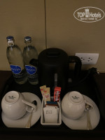 Чайный набор (кофе и сухие сливки в саше, чай в пакетике, сахар белый и черный, вода в стекле - 2 бутылки (пустые бутылки не выбрасываем).