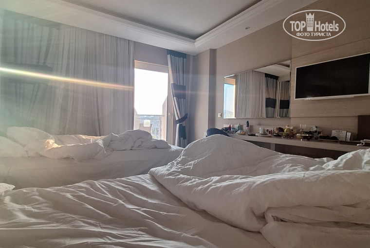 Я первый раз в Турции и скажу,что это самый лучший отель,первая береговая линия,очень красивый внутри отель,комната чистая,ремонт свежий,все исправно работает,убирают хорошо,даже кровати заправляют,мини бар пополнчется каждый день!Бары и рестораны все свежее и наивкуснейшее,каждый день новые блюда.Море фруктов и овощей,мяса и рыбы!Персонал всегда улыбается и приветствует!В ресторане спрашивают,что я хотела бы попить!Многорусскоговорящих это очень радует!На пляже чисто,снек-бар в шаговой доступности!Всё просто в идеале!Каждый вечер играет пианистка,на улице на сцене концерты каждый день и дискотеки,днём тоже развлечения-фитнес,волейбол,пеннная вечеринка и многое другое!Сауны и парилки наичистейшие!Вечером также пирсе дискотеки,и 2 бара один до 4 вроде,другой до 6.Желаю дальнейшего процветания отелю!Вы большие молодцы,я обязательно вернусь!