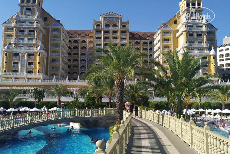 Доброго времен суток. Отдыхали семьей в августе 2024 года. Попали в этот отель случайно. Произошел овербукинг. Вместо забронированного Роял Драгон в Сидэ нас привезли сюда. Сначала было настороженное отношение к отелю, тем более что у нас был ранний заезд и часа 4 мы были без номера. На рецепшене персонал очень вежливый, отнеслись с пониманием к нашей проблеме с заменой отеля. Багаж определили в багажрум, нам надели браслеты, отправили завтракать. Времени до заезда в номер у нас было достаточно, мы обошли территорию отеля, дошли до пляжа. Впечатления остались достаточно хорошими и мы решили остаться здесь, тем более отель находится в часе езды от аэропорта Антальи вместо 2-3 часов до отеля Драгон в Сидэ. И не прогадали. При заселении нам предложили несколько номеров, выбирали долго, придирчиво. Номер хороший на 4 этаже, море видно, на семью из 4х человек было три кровати: 2 односпальные и 1 двуспальная. В номере ванная с душем, туалет отдельный. Полотенца хорошие на всех, принадлежностей много, меняли практически ежедневно. В номере холодильник (2 жб пива Эфес, 2 жб липтон чай, 2 жб типа миранды, воды минеральной шт.10), чайник, чай пакетики, кофе - все пополняется ежедневно. Убирались каждый день, не совсем хорошо, на 4. Гости в основном иностранцы, персонал на русском практически не разговаривает. Атмосфера доброжелательная, и с гостями и персоналом. В столовой подходят официанты, спрашивают что нужно, что принести, что будете пить. Еда разнообразная- и курица, и баранина, говядина, рыба, гарниры - рис, макароны, картошка фри и др. Из напитков вода, соки 2-3 видов, вино белое-красное-розовое столовое, достаточно приличное. Есть зона столовки без детей до 16 лет. Веранда на улице большая. Детские молочные каши несколько видов. Были и роллы, креветки, крабы. Салатов много разных, зелени полно, сыры, колбасы. Десертов очень много, пахлава, торты, пироженки. Фрукты - арбузы вкусные, дыни, персики, груши и др. в обед и ужин мороженое шариками. После ужина работает ночной бар. Пиво, коктейли, снэки. Зона мягких кресел и диванов рядом огромная, можно потюленить. Вай фай работает средне, достаточно хорошо и в номере, и в лобби, и на пляже. В 00-00 открывают ночной ресторан для тех, кто не наелся). По анимации отель больше нацелен на семейных, ночных громких дискотек нет. Ежедневно днем в бассейне какие то конкурсы, упражнения в воде под музыку. Была пенная вечеринка разок. На пути к пляжу есть детский лунапарк- колесо обозрения, самолетики по кругу, даже свой автодром, детям понравилось. Горки в бассейне хорошие, есть для взрослых отдельная зона, для детей возрастом до 12 лет примерно, и для совсем мелких. Вдоль бассейна справа бар работает, можно поесть и шаурму и круассаны, палочки вкусные. Бар с коктейлями тут же. Шезлонги можно не занимать и у бассейна и на пляже, места мы находили всегда, тем более что были в разгар сезона. Бассейн почти везде 1,40 м глубиной, вода чистая, не пахнет хлоркой, чистят дно ежедневно и воду. Пирс делит пляж отеля пополам, в длину метров 100 наверное общая длина пляжа. На пирсе тоже шезлонги и бар с напитками. На пляже песок, при входе в воду мелкий ракушечник с мелкими камнями. Достаточно комфортный пологий спуск, но за детьми нужно следить, бывают волны. Навес от солнца сплошной. Шезлонги не всегда чистые, бывают в песке, и вокруг мусор. Но за ночь все убираю