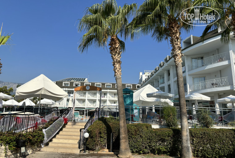Хороший отель для семейного отдыха. Отель расположен на первой линии, поэтому до пляжа очень близко. Есть и бассейн и горки, территория отеля небольшая, но ухоженная.