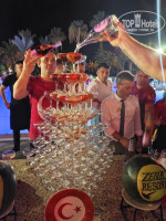 Мы попали на день победы Турции, это было вообще феерично. Столы накрыли у бассейна, шары, фейерверки, торжественный вынос торта, горки из шампанского, танцы, песни.