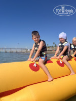 3. Пляж, море, бассейны. Просто супер, песочный пляж и заход в море тоже, совсем чуточку мелкой гальки намывает волнами, можно найти маленькие ракушки. Русских в отеле очень много, поэтому лежаки на море нужно занимать до завтрака, у бассейна всегда можно найти место. Мы занимали у бассейна, потому что ребенок очень любил резвиться в детском бассейне, а на море просто ходили покупаться, в песке поковыряться. Рядом с детским бассейном сразу взрослый, причем у него глубина от 100м начинается, с 5тилеткой можно и там купаться. Кто без детей отдыхает с другого края бассейна, там поглубже. Есть еще 3ий бассейн с горками, минус что горки работают с 10 до 12, в соседних отелях горки работают и после обеда пару часов, так что как-то это прям странно мягко-говоря.