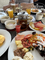 Еда - вкуснейшая. На завтрак свежевыжатый апельсиновый сок и каждый день разные фреши типа огуречного, свекольно-апельсинового. Слабосоленый лосось, копченая скумбрия, сыры от пармезана до дор блю. Порадовали чаи, которые ты сама можешь насыпать в чайник и сделать свою композицию. Заказываешь яичницу или омлет - приносят на стол. И вообще официанты очень шустро все приносят и убирают.