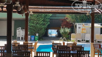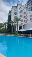 Пишу отзыв, находясь ещё в отеле, сентябрь 2024 года. Сам руководствовался при выборе отеля, читая отзывы. Хочу быть объективным, поэтому сразу скажу, что не поставил высший бал, поскольку есть и существенные минусы. Но всё по порядку. Опишу сначала безусловные плюсы. Отель 1994 года постройки, но несмотря на приличный стаж, поддерживается в очень хорошем состоянии, а в части именно чистоты - просто идеально! Для 3* отель очень хорошего уровня. Прежде всего стоит отметить месторасположение. Оно очень удачное, на первой линии, до моря через тоннель под а/д всего 50 метров (на фото увидите вид из ресторана в центре кадра отблеск моря в тоннеле). Поэтому чтобы выйти на море не надо выходить в город, по сути передвигаешься по территории отеля. Правда тоннель в 19 часов закрывается, и потом обход уже через улицу. Выход в городок на прекрасную чистую улицу, где есть все услуги: сувениры, магазинчики, кафешки, в 50 метрах Migros. Территория: большая и очень зелёная, огромный бассейн основной (глубиной до 2.20м.) и маленький для малышей. Номера: маленькие, вместе с с/у общая площадь метров 15, не более, но не тесно. Для переночевать более чем достаточно. Внутри всё чисто, сантехника, кондей, мебель, всё исправно. Питание: 4 разовое. Для 3* ассортимент присутствует, стараются разнообразить, всего хватает. На утро есть каша, шакшука, яицница, салаты. Гарниры: рис, картофель, грибы, овощи в разных вариантах. Из мяса: курица и индейка, раз в 3 дня дают рыбу. Очень много овощей, особенно понравились фаршированные говяжьим фаршем кабачки и баклажаны. Есть выбор десертов. Из фруктов: апельсины, дыня, яблоки. Алкоголь: пиво TROY, местные водка, джин, ракки. Анимация: по факту практически не замечена, кроме утреннего дартса и музыки, ставят мультики для детишек. Особенно стоит отметить коллектив отеля. О нём многие писали. Действительно все очень доброжелательные. В баре работают молодые ребята, очень скромные и отзывчивые. Уборку проводят ежедневно, очень тщательно. Что касается косметики, то дают только кусковое мыло и шампунь. Больше ничего нет. Так что берите всё своё. Теперь о минусах: при полной загрузке отеля лежаков на пляже для всех не хватает, матрасов на них нет, а сами лежаки почти каждый второй имеет трещины на месте под пятую точку. В общем сами понимаете, приходилось исхитряться и подкладывать пару полотенец. Тут тоже важный нюанс: пляжных плотенец не дают, из номера брать нельзя, да и полотенца в номерах меняют только раз в 4 дня (могли бы и чаще). Интернет: есть бесплатный wifi, но только в зоне ресепшена и в баре у бассейна. Когда собирается больше 20 человек, то начинает зависать. Ну вот из основного наверное и всё. В целом впечатления от отеля хорошие, могу рекомендовать к посещению!