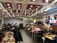 ЗАВТРАК в ресторан "Веселый Рузвельт" на 1-м этаже, можно пройти через второй этаж, можно через улицу. Через улицу быстрее и приятнее. На завтрак шведский стол, много плотных мясных блюд, какие-то морепродукты... выпечка... вино. Качеством еды и тем более вина были более чем довольны.