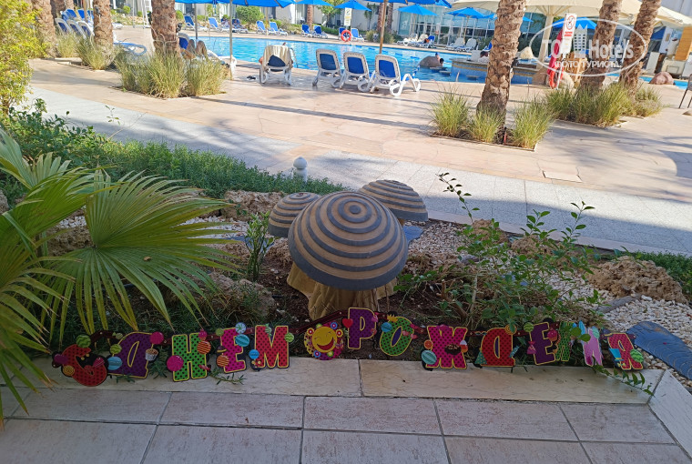Из плюсов: огромная территория, есть где погулять вечером, несколько бассейнов, не бывает много людей вокруг, большое разнообразие еды в столовой гл корпуса. Правда минимум по фруктам. Выпечки море целое. Номера приличные, хотя и нуждаются в косметическом ремонте. Уборка ежедневно. Бар в главном корпусе работает почти 24ч. Есть и небольшой магазинчик, где можно к бару в дополнение купить снеков.