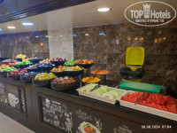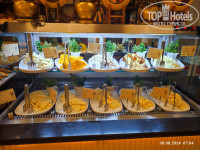 Понравилось несколько залов в ресторане отеля, каждый оформлен по-разному. По питанию: всего много, но не могу сказать, что очень вкусно. Вот от супов восторг, подсели на них в обед. Фрукты были, но персики, нектарины и груши зелёные, приходилось брать в номер и ждать, когда поспеют. Яблоки, виноград, арбузы и дыни вкусные.