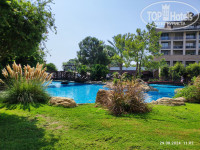 Территория отеля большая, очень зеленая и красивая. Есть где прогуляться и в тоже время все рядом. Море шикарное! Ради него и едем в такие далекие края. Понравилось наличие нескольких пляжей за счет чего протяжность береговой линии огромная. Муж останавливался на центральном пляже, а нам с дочкой понравился больше пляж где аквапарк. К нам муж приплывал периодически, потом возвращался пешком на свой пляж. На пляже всегда можно было найти свободный лежак. Дочка иногда пользовалась аквапарком, жаль, что не работала белая и самая крутая горка. Номер понравился, несмотря на то, что номерной фонд старый, у нас все работало. Большая площадь номера, ванна и душевая одновременно, ни разу за много лет отдыха не встречала такое в Турецких отелях, огромная кровать. Кондиционер, который не дул на кровать, как в большинстве отелей. Система вентиляции, что спасала ночью. Расположение самого номера. Шумоизоляция номера была достаточно хорошая.