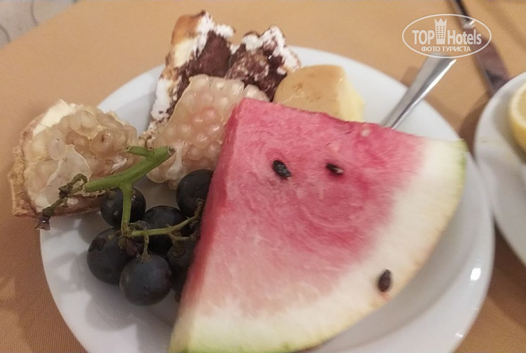 Небольшая территория. Еда в принципе норм. Фрукты есть,мясо тоже. Есть даже что то разнообразное,но)))) скукота такая,как бы ты находишься в санатории для ПЕНСОВ. Пенсы-это пенсионеры. Не советую от слова совсем. Жаль потраченных денег.