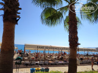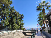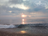 Чтобы не терять время, мы спустились на -1 этаж в Хамам и переоделись в пляжную одежду, которая была в ручной клади. Чемоданы оставили на Ресепшине и пошли на море. Дорога до моря находится через дорогу и занимает 3 минуты по тенистой живописной аллее. На пляже утром людей было много. Свободного лежака в тени мы не нашли. Поэтому пришлось расположиться на занятом полотенцем. Забегая вперед скажу, что проблема с занятыми лежаками здесь имеется. Несмотря на то, что перед пляжем есть предупреждение о запрете резерва лежаков, люди всё равно встают ни свет, ни заря и бегут занимать шезлонги. Это бесит, конечно. Поэтому после завтрака на море мы не ходили. Купались только после 16 часов, когда было меньше людей. Море было шикарное! Теплое, чистое, прозрачное. При выходе из воды было не холодно.