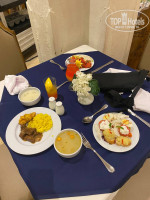 + В вашем распоряжении будут два основных ресторана и один дополнительный между двумя отелями на втором этаже. Сильных очередей нет. Еда нам понравилась. Конечно, выбор не такой разнообразный, как в Турции в такой же 4*, но мы всегда были сыты. Морепродуктов не было, но иногда подавали рыбу. Фруктов маловато: гранаты, груши твердые и зеленые дыни, но и этого хватало.