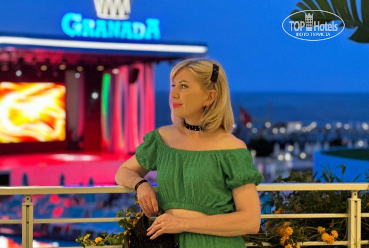Замечательный отель для комфортного отдыха!!!! Лично у меня есть несколько условий для отдыха: сравнительно новый отель, небольшой ,чтобы было всё красиво и эстетично! Обязательно чистота в номере , удобная постель , белоснежное постельное белье. Вкусная и разнообразная еда. Обязательно 1 линия, удобный вход в море, так как боюсь глубины и плаваю только у берега) Всё это я нашла в Гранаде!!! Всё вокруг радует глаз, красиво! Хотелось бы отметить очень быстрое заселение , сразу после приезда проводили поесть. Просторные , чистые номера с зеркальным потолком) Еды очень много и она просто круглосуточно! Всё выглядит очень аппетитно, глазами хочется всё попробовать , но понимаешь что это невозможно и просто теряешься что же выбрать) Насчёт алкоголя ничего не скажу, так как не пью. Но турецкий кофе очень вкусный! Насчет детей ничего не могу сказать, так как отдыхали без детей. Каждый вечер на сцене проходят потрясающие шоу программы с приезжими артистами, на пирсе дискотеки! Если устанешь от шума можно посидеть в фойе и насладиться живой музыкой , каждый вечер приходит женщина и прекрасно играет на фортепиано! Отдых был чудесным ! Это место, куда хочется вернуться и надеюсь скоро вернусь!!