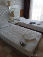ПЛЯЖ: Плюс отеля, что пляж рядом, три минуты ходьбы. Пляжные полотенца бесплатно можно брать в хамаме. В наш заезд на пляже ничего уже не было, воду носили с собой. На пляже очень грязно, за порядком никто не следит. Лежаков всем хватало. Заход в море — галька, у кого чувствительные ноги, лучше приобрести спецобувь. Но это было всё лютики, потом начались цветочки. И моему спокойствию пришёл конец, и впечатление об отеле окончательно испортилось. В отеле 15.10 заканчивался сезон и он закрывался, народа осталось мало. Три дня в отеле не было никакой воды. Первый день я как-то перетерпела, к обеду её немного дали, наверное чтобы мы смогли сходить в туалет . На второй день её не было с утра, пошли умываться на море, думала, к обеду опять дадут, но нет, и в обед её не дали. И вот тут «Остапа понесло», моя нервная система не выдержала и я немного вспылила на ресепшен, за что меня хотели выселить из отеля. Матом не орала, хотя очень хотелось, просто повысила голос. В день отъезда, мы выезжали ночью, воды тоже не было, пришлось идти умываться в хамам на первый этаж. Кормить нас практически перестали, скармливали нам гнилую помидору.