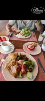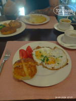 В общем завтраки стандартные: яичница(мужчина делал оооочень вкусно,с сырочком,остреньким перчиком,зеленью и солью посыпал,ммммм) панкейки, йогурты,джемы, сыры, колбасы(яркую есть невозможно, светлая съедобная),булочки вида 2-3,овощи,зелень,фрукты.Ну это стандартно.
