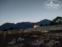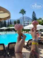 Очень маленькая,но зелёная. В баре на ресепшене девушка Аида делала суперские коктейли, было видно,что с душой♥️Рядом стоит кофе машина(но имейте в виду ,что ночью она не работает, например,при ночном выезде вам выпить кофейку там не удастся). Далее у бара дают мороженое вкусное,вафли, сладости. Чуть дальше у бассейна доброжелательная дама пекла гезлеме, тоже понравились.Правее снек бар,где можно перекусить ,например,пиццей или картошкой фри. Далее 3 горки и бар.