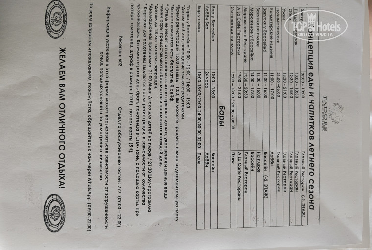 Здравствуйте, по отелю сложилось двоякое впечатление, на ресепшене быстро без проблем заселили, портье все объяснил и рассказал о концепции отеля, в ресторане голодными не останетесь, но завтраки на мой взгляд ужасны все холодное, а где та самая вкусная турецкая выпечка? Тут можно сказать ее нет если и есть то очень мало и холодная..... Да они совершенно не умеют жарить шашлык из баранины, зачем переводить мясо??? Ребят научитесь вкусно готовить, шашлык сырой спасибо кисе ей все скормили. Официанты молодцы, особенно мужчина в возрасте молодец быстро все делает напитки приносит со стола моментально убирает. Гезлеме вкусные пекут , но до 20.10 потом уличная еда и гезлеме не работает. Вода сейчас только в кулерах, и в 1.5 бутылках. Бар пополняют только при уборке номера, это случается не каждый день. Шампунь, кондиционер и один кусочек мыла только при заселении. Анимация на данный момент проходит в отеле поэтому при бронировании номера учитывайте этот момент. Так же на пляже просто жесть за ним не ухаживают окурков полно но это еще мелочи по сравнению с лошадиный 💩, бежит ребенок или ты идёшь и неожиданно вляпаешься