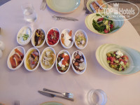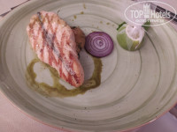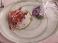 В основном ресторане морепродукты(кальмары, креветки, мидии- в основном сотэ и ризотто), лосось, дорадо, форель, пангасиус, раки, баранина, курица,говядина, язык, ), и т.д.