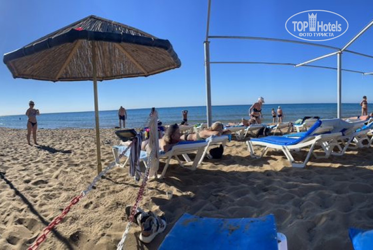 Рядом отели где туристы отдыхают в комфорте под зонтами