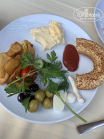 Завтраки начинаются в 07.00 ,всегда однообразные: менемен,вареные яйца ,картофель по деревенски, хлопья ,овощи ,колбаса ,сыры (вот они вкусные ) ,булочки ,самостоятельно можно делать тосты. Вкусный кофе из кофемашины.С 8.00 пекли оладья и жарили яичницу.