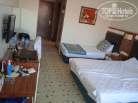 Начнём с номера пятого корпуса, именно туда нас заселили с видом на бассейн. Ни к заселению, ни к номеру никаких претензий – большая площадь, ковровое покрытие на полу, всё работало. Но зачем при уборке номера не менять полотенца, а просто забирать? Почему я должен бегать за горничной по этажам и объяснять, что нечем вытираться? В номере был один стакан. Принёс из бара второй. При уборке «не тот» стакан горничная забрала. Принёс ещё раз – картина повторяется. Где логика? Отдыхают два гостя в номере, должны пить из одного стакана? Прятал в холодильник, туда не лазили.