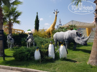 От аэропорта до отеля ехали без пробок минут 20. Приехала в отель часов в 12, на ресепшен народу не было и я сразу подошла к русскоговорящий девушке Ирине. Она конечно разочаровала. Поздоровалась через губу, взяла документы, оформила документы, дала ключи и сказала, что все вопросы на другую стойку, которая занимается сервисом с клиентами. При всем обращении даже ни разу не посмотрела на меня. Когда я пошла искать номер, думала никогда не выйду из этих котокомб, запутанность огромного отеля просто ужасна, при таком расположении номеров гостя о вязаных провожать до номера, хотя бы в первый раз. Вообщем я бродила минут 15. Нашла и ужаснулась, что номер практически на 1 этаже в кустах, хотя я брала номер с видом на море. К счастью на этом мои разочарование в отеле закончились. Вернувшись на ресепшн, мне сразу заменили номер и уже новым я осталась довольна, не смотря на то, что в номере было пыльно, штора с дыркой, вся золотая отделка потер ая и стекла очень плохо натёрты, то есть уборка в номере оставляет желать лучшего. Но меня это не особо напрягало. Постель чистая, пол чистый. Мне этого хватило. Мини бар пополнился регулярно, убирались каждый день. Территория огромная и все узнаешь только с помощью интерактивной карты и тем что каждый день вечером ходишь и изучаешь что и где. На пляже есть QRкоды через которые можно заказать напитки, но ждать очень долго, проще самому подойти к бару и заказать. Песок на части пляжа белый, который завезены с Египта еще пои строительстве. Сейчас досыпают черный. Вход в море с галькой, но меня это не напрягало. Единственное было больно выходить когда были сильные волны. Лежаков много. Первую линию всегда занимали с 7 утра, при этом сами многие приходили часам к 11, а лежаки просто стояли пустыми. Также когда подходишь утром на пляже много не убранных столиков со стеклянной посудой, это опять к плохой уборке. Кормили просто на убой и очень вкусно, это самый большой плюс отеля. Еще один большой плюс, это то, что практически весь персонал русскоговорящий. Территория отеля большая, но видно, что за ней плохо ухаживаю, все обшарпано (отель сейчас в аренде и боюсь, что ухаживать за ним никто не будет), ни один фонтан не работает.