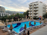 Был вечерний вылет из Екатеринбурга. Паспортный контроль очень быстро прошли и у нас был целый автобус в этот отель, поэтому доехали часа за 1,5. В отель привезли ближе к 21.30, но всех накормили и даже успели послушать живую музыку. Быстро заселили. Номер у меня был одноместный на 5 этаже с шикарным видом на море и бассейн. По утрам и вечерам такие красоты! Немного шумновато было в первый вечер, так как бар почти под балконом, а так вполне нормально. Самое главное - красивые виды!