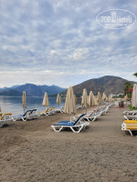 Море рядом - минут пять (можно пойти слева от отеля или справа). Лежаки уже давали бесплатно, так как конец сезона и народу очень мало на пляже. Море прохладное, купалась мало. По утрам 15-17 градусов, а днем жара была до 26-27, но море все равно уже не прогревается из-за ветра и ночных похолоданий.