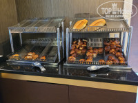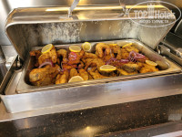 На завтраках выбор не такой большой, но всегда есть омлет, яйца жареные и вареные, сыр разный, колбаса, овощи, каша, творог, мюсли и булочки. с 16 до 17 еще печенье и кексы выносят. Пару раз забегала попробовать.