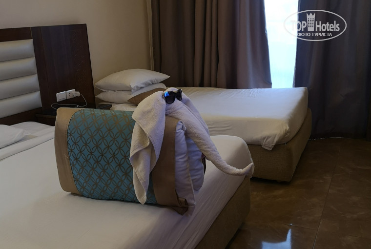 Ехали целенаправленно в этот отель на встречу с друзьями из разных стран и городов, т.к он подходил для отдыха с детьми. Для детей здесь продумано всё: питание, бассейны, безопасные горки, заходы в море с понтона, где мелко, анимация. Нас поселили в 3 корпус, который дальше асего от пляжа около 12 часов. Наш номер соответствовал фотографиям, у дочерей в 3361 был маленький номер и очень маленький балкон за стеноц, в которой было маленькое окно. Не было даже покрывала на кровати. Мухамед убирал хорошо и делал красивые фигуры, но пополнить гели для душа или принести полный комплект полотенец надо было просить. Номера в приличном состоянии, но душевые лейки требуют замены и мебель тоже не новая, дверца холодильника не закрывалась. Wi-Fi ловил почти везде, для переписки в мессенджерах хватало, а вот грузить видео или фото могли не везде. Ключ от номера приходилось активировать почти каждый день (носили отдельно от телефона), причём, если активировали один, то переставал работать второй. Еды много, всё вкусно и за 6 дней не попробовали даже 30% возможных блюд. Манго, действительно, в этом отеле не дают. Мы покупали килограмм за 1$ в магазине через дорогу. Персонал весь приветливый и готов помочь, все улыбаются. Услуги на пляже предлагают, но не навязчиво. Есть пляжный волейбол, теннис, минигольф. Бесплатный бильярд в Спорт баре, где вечером делают Мохито. Дискотека в Ирландском пабе с русскими песнями до 00 часов. А вот рыб на рифе почти нет. Для тех, кто едет ради моря, будет разочарование. После обеда почти всегда можно было плавать в конце пирса, но смотреть в зоне, ограниченной буйками нечего, только кораллы красивые, а рыб мало и сильный ветер. В следующий раз поедем в другой отель.