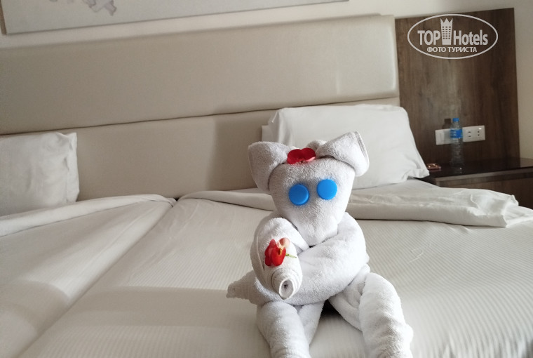 Номер просторный, чистый с добротной мебелью, и очень удобными кроватями. Кондиционер работает прекрасно. Ванная с душем, все принадлежности имеются (шампунь, бальзам, гель для душа, мыло, шапочка, фен) полотенца меняют как и уборка каждый день. Халаты тапочки по запросу.