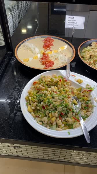 Овощи, зелень, сыров ( видов 10-15), выпечка, колбасы( конечно турецкие, не наши), отличие есть естественно, рыба всегда, курица тоже, индейка, баранина раз в три дня. Очень вкусная паста( макароны), конечно разнообразные турецкие закуски и салаты,нагетсы , фри, шаверма и разнообразные снеки.
