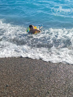 Море. Вот для меня было ой как удобно, что на море нужно переходить подземный переход. Так как мой ребенок с бандой друзей бегал по всей территории, случайно на море попасть не мог, поэтому ходил только со мной. Идти то 2 минутки, это не напрягает. Просто всю территорию отеля разделяет дорога на пляж и на основную территорию. На территории пляжа Снек бар, 2 бассейна, комнатки для переодевания, шезлонги, зонтики, аттракционы (только вечером), детская комнатка, амфитеатр (для меня тоже оказалось плюсом, потому что музыка не громыхала в номере). Галечка мелкая, в коралках вообще не чувствуется, море чистое.